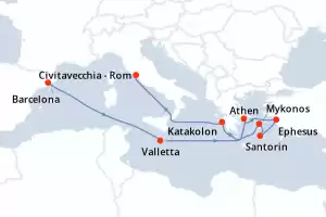 "Auf einem Abenteuer rund um die griechischen Inseln Im Laufe der Jahre hat sich Griechenland zu einem idyllischen und paradiesischen Ort entwickelt, der bei Kreuzfahrtpassagieren sehr beliebt ist. Es ist daher nicht sehr überraschend, dass die griechischen Inseln zum neuen Flaggschiff-Reiseziel für Kreuzfahrten geworden sind. Ein Land, das sowohl magisch als auch romantisch ist. Genießen Sie lange romantische Spaziergänge, erkunden Sie die antiken, geschichtsträchtigen Ruinen oder probieren Sie sogar die typischen Gerichte der Region – alles in einem einzigen Aufenthalt. An Bord einer unserer Luxuskreuzfahrten erkunden Sie diese fernen Strände dank einzigartiger Expeditionen mit Katamaranen oder Kajaks. Abenteuerlustige können bei atemberaubenden Tauchgängen inmitten kleiner Unterwasserhöhlen ihre Grenzen austesten. Von sonnenverwöhnten, perlweißen Steingebäuden bis hin zu den weißen Sandstränden von Mykonos – unsere Auswahl an Kreuzfahrten ist bis heute die beste Möglichkeit, diese faszinierenden griechischen Inseln zu erleben."