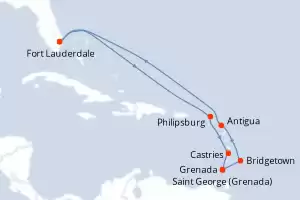 "Die westliche Karibik ist die Heimat aller Arten tropischer Köstlichkeiten, von den weltbesten Korallenriffen bis hin zu historischen Ruinen und spektakulären Stränden. Verbringen Sie auf einer Westkaribik-Kreuzfahrt Ihre Tage im oder auf dem Wasser, genießen Sie frische Meeresfrüchte im Freien, wandern Sie in üppigen Regenwäldern oder entspannen Sie sich auf den unvergleichlichen Sandstränden der Region. Entdecken Sie die alten Traditionen und historischen Stätten der Riviera Maya. Probieren Sie authentischen Key Lime Pie in Key West oder erleben Sie die fröhliche Atmosphäre der Bars in der Duval Street. Begeben Sie sich auf das Abenteuer Ihres Lebens in Belize, wo Sie in Höhlen Schlauchboot fahren, neben Haien schnorcheln oder über einem üppigen Dschungel mit der Seilrutsche fahren können ... Egal, ob Sie auf der Suche nach Nervenkitzel oder ein wenig Ruhe sind, auf Kreuzfahrten in die Westkaribik mit Celebrity werden Sie sicher finden, was Sie suchen."