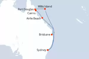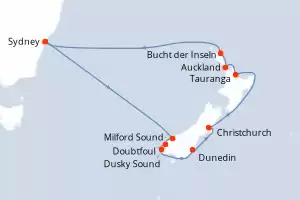 Die Welt „Down Under“ umfaßt mehr als nur Koalas und Kängurus. Es ist eine atemberaubende Mischung aus moderner Architektur, packenden Kulturschätzen der Aborigines und der Maori, sowie faszinierender Natur. Erkunden Sie Berge, Wüsten, Urwälder oder aktive Vulkane. Tauchen Sie ein in die magische Unterwasserwelt des Great Barrier Reefs. Auch Shopping in modernen Metropolen ist ein fantastisches Erlebnis, bevor Sie sich auf einer Liege auf dem Deck ausstrecken und die Sonne über der Skyline von Sydney untergehen sehen.